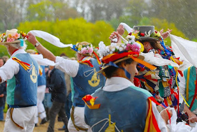 I have never really got the whole Morris Dancing thing. All that floral decoration and jingly jangly stuff hanging of legs and arms. May Day long weekend and I popped along to the country food and craft fair at Earsham Hall near Bungay in Suffolk. The weather was bloody freezing - just a typical holiday Monday in the UK. Enthusiasm was not dented though by the crowds visiting this beautiful country estate on the edge of the Suffolk/Norfolk border. We all know that photos can be misleading (or should know by now), and this shot of colourful dancers bathed in glorious sunlight is not what it seems - try about 10 degrees and a howling gale. Don't believe me, well take a look at this next photo taken less than a minute afterwards....